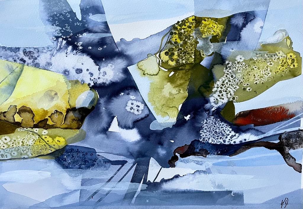 Gouache dries quickly and completely matt - and just like with watercolor, dried color can be dissolved again with water. During the painting process, you can therefore take a damp cloth and wipe off some of the paint, so that what remains, thus also becomes an exciting background surface.