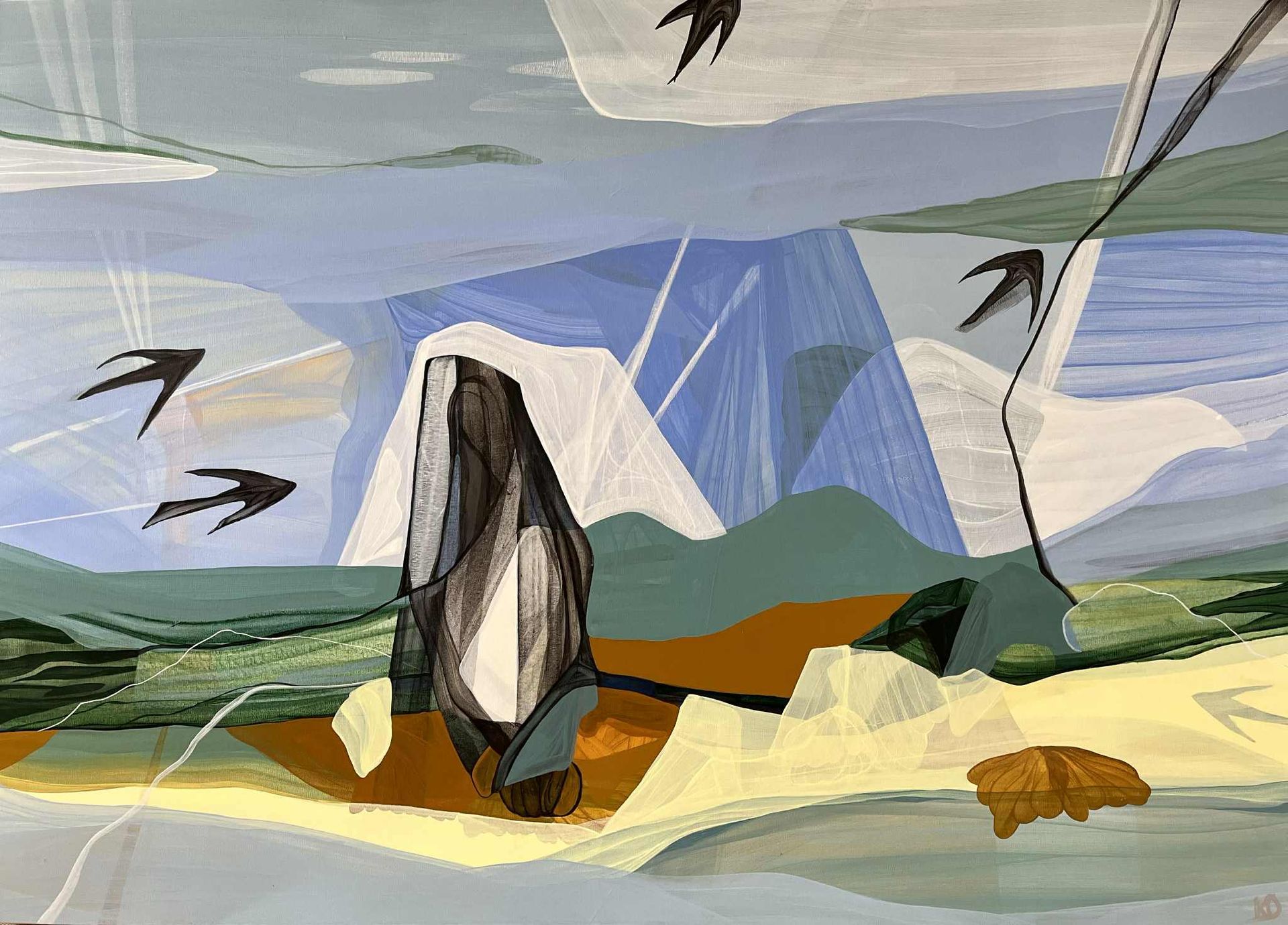 Acrylic paint dries quite quickly while working, so this leads to a work process where speed, flexibility, intuition and creativity are paramount.