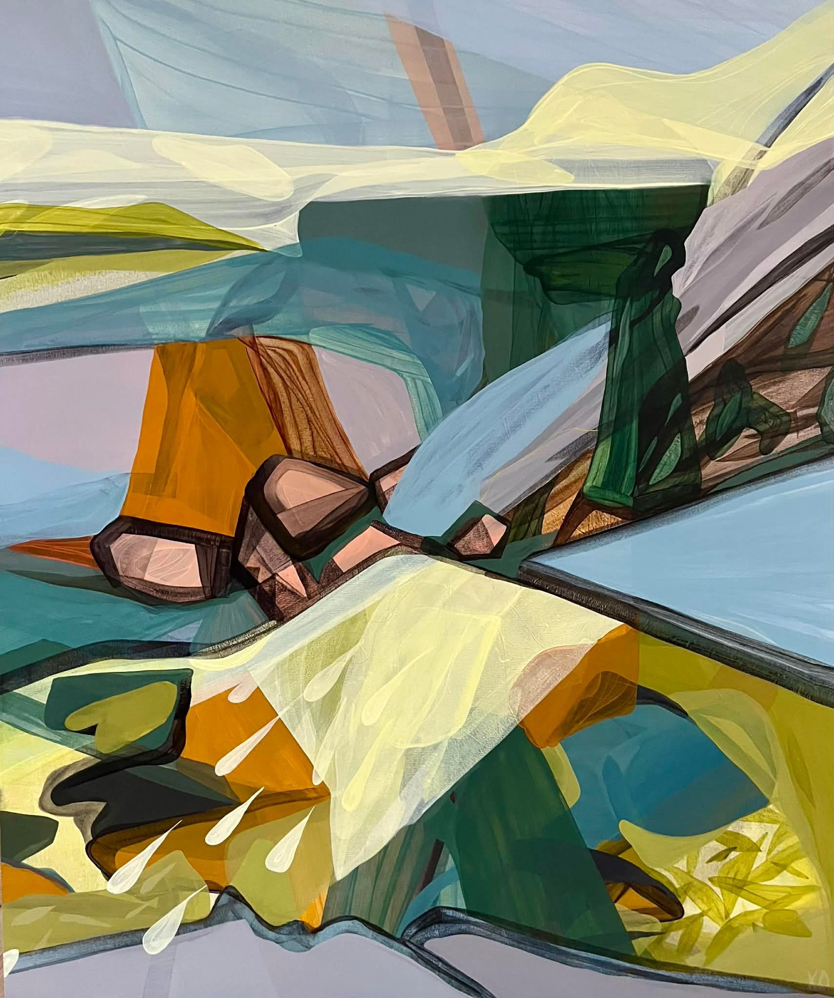 Akrylmaling tørrer ret hurtigt mens man arbejder, så dette leder til en arbejdsproces, hvor hastighed, fleksibilitet, intuition og kreativitet er i højsædet.